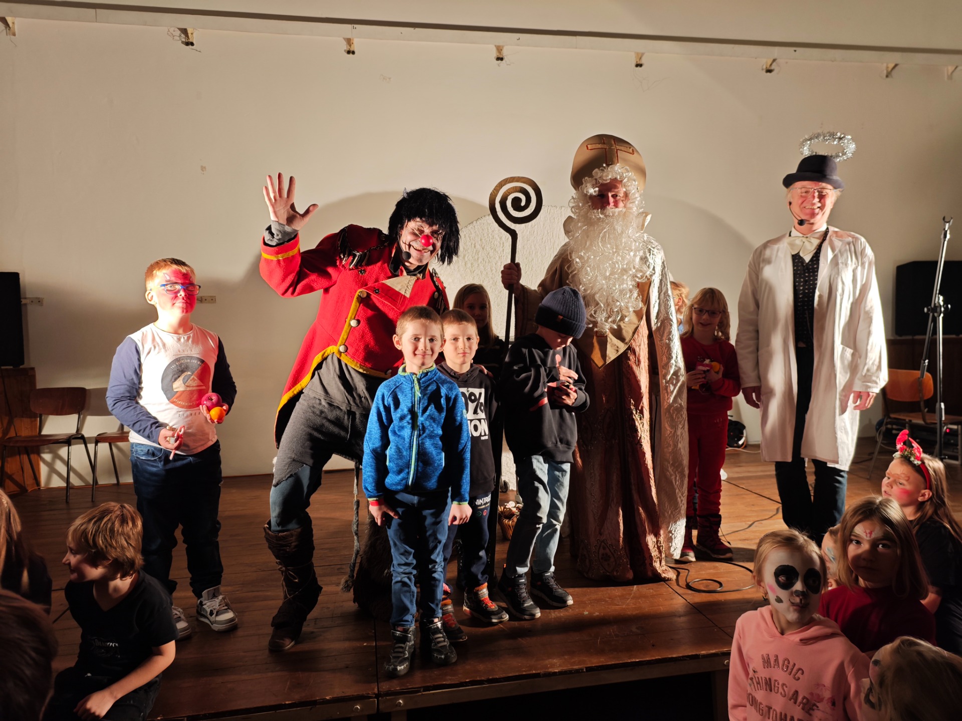 Naše tradiční Mikulášská nejen pro děti v jílovské sokolovně. Tentokrát s netradičním popleteným čertem a andělem v podání klauniády divadla MIMos!